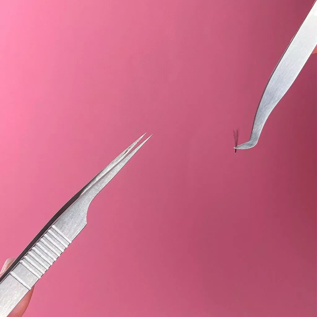 Pince volume Combinal pour extensions de cils, avec une pointe épaisse permettant une prise plus forte pour la création de bouquets parfaits étroits ou larges (du 2D jusqu'au 12D).
