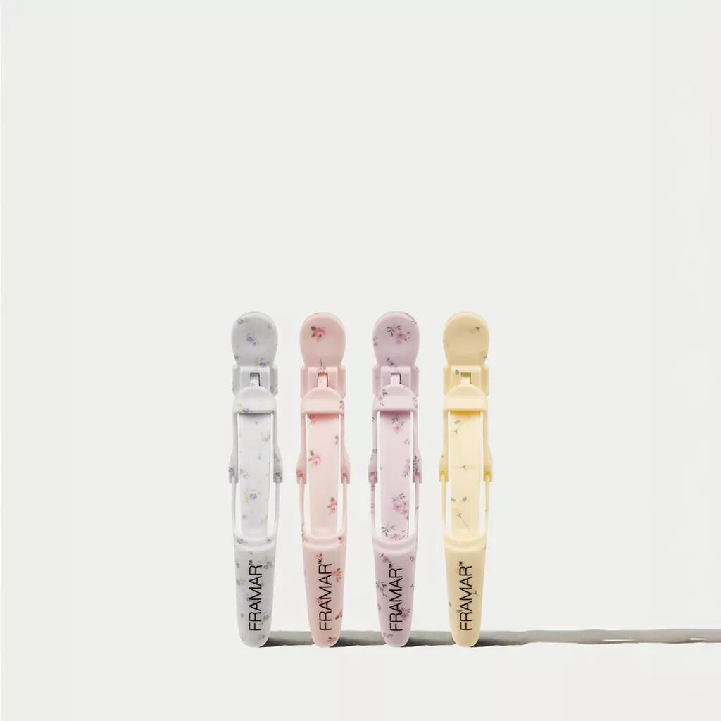 Lot de 4 pinces à cheveux caoutchoutées à motifs floraux vintage.